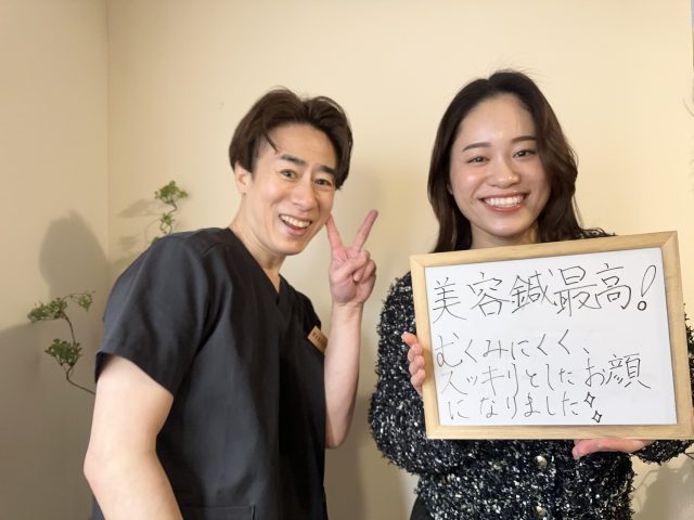翌朝のメイクののりも良くこれだけ効果が実感出来たのは榎本先生の美容針がはじめてです。文章だけでは伝えきれませんが、ともかく榎本先生の美容針はとっても良いです!!又、是非お願いしたいです。